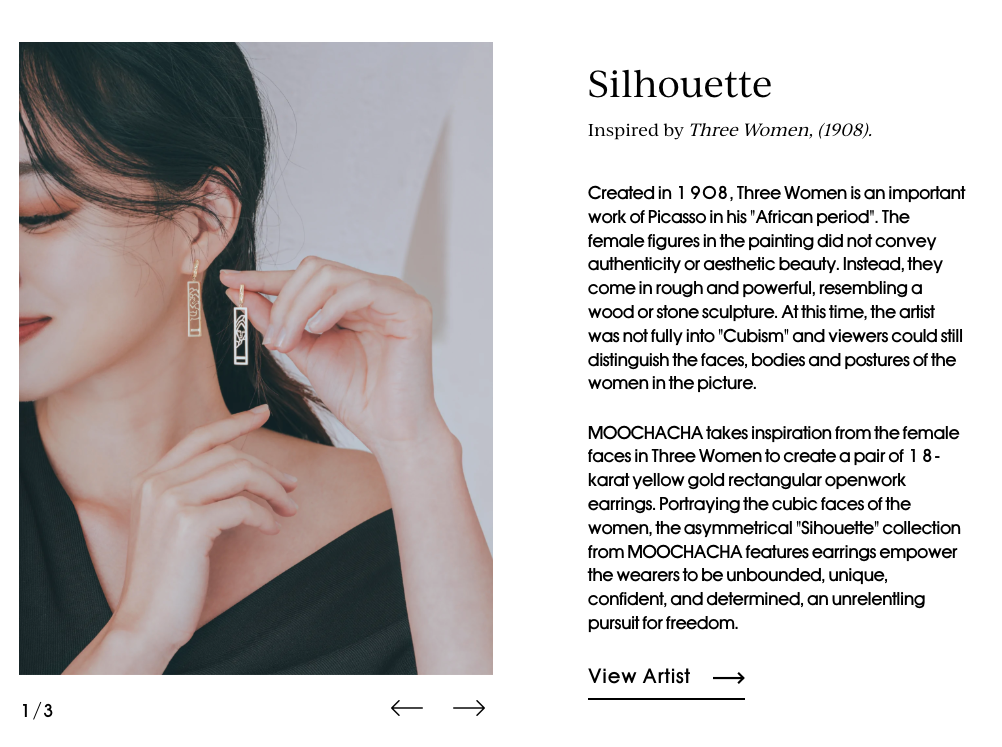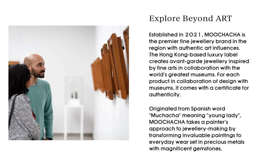 CLIENT: MOOCHACHA is a Hong Kong-based luxury label established in 2021. They collaborate with world-renowned museums to create avant-garde jewellery based on celebrated artworks by the likes of Monet, Da Vinci, Picasso, and more.